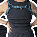 Double chain on front with adjustable buckles on back and underarms